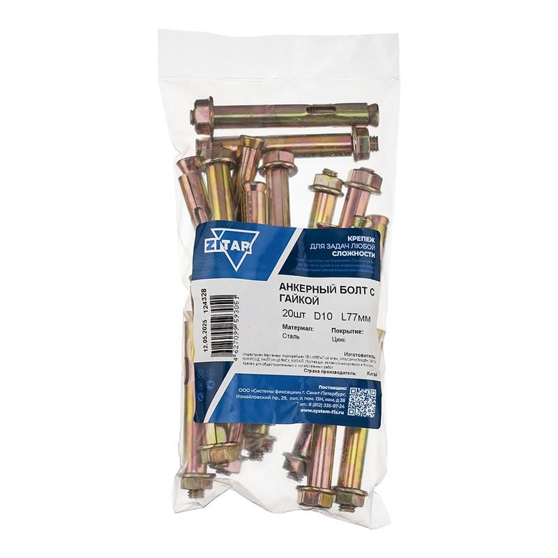 Читать все статьиБолт анкерный с гайкой 10х77 (пакет) (уп.20шт) Zitar 124328