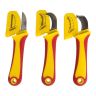 Монтажный нож предназначен для удаления изоляции с многожильного кабеля и других электромонтажных работ. Усиленное лезвие со прецизионной двухсторонней заточкой подходит для работы с толстыми материалами, изготовлено из нержавеющей стали, благодаря чему защищено от коррозии и имеет продолжительный срок эксплуатации. Кончик ножа оснащен "пяткой" - ограничительной пластиной - для качественного снятия оболочки без риска повредить жильную изоляцию. Изогнутая форма лезвия делает нож удобным для работы в труднодоступных местах. Мощная противоскользящая двухкомпонентная рукоятка изготовлена из мягкого пластика и гарантирует комфорт и безопасность во время работы. Для удобного хранения и транспортировки ножа предусмотрены пластиковые ножны.