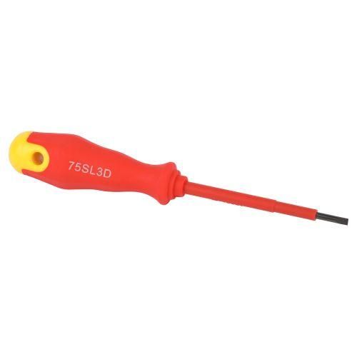 Читать все статьиОтвертка SL3х75мм шлицевая диэлектрическая до 1000В двухкомпонентн. рукоятка ЭРА Б0055874