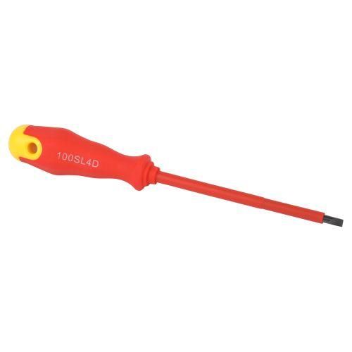 Читать все статьиОтвертка SL4х100мм шлицевая диэлектрическая до 1000В двухкомпонентн. рукоятка ЭРА Б0055875