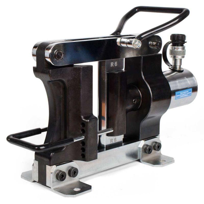 • Максимальная ширина шины: 150 мм • Максимальная толщина шины: • медная: 10 мм • алюминиевая: 12 мм • стальная: 6 мм • Два сменных пуансона с радиусом гиба 5 и 10 мм в комплекте • Минимальный угол гибки: 90° • Профиль гибки: П-образный, Z-образный • Шкала индикации угла гибки • Возможность стационарного крепления пресса • Максимальное усилие: 16 т • Присоединительная резьба: K 3/8" «розетка» • Вес инструмента: 17.30 кг • Упаковка: прочный пластиковый кейс • Габариты упаковки: 430х360х145 мм • Совместимость: любые гидравлические насосы «КВТ» с объемом рабочей жидкости не менее 0.60 л