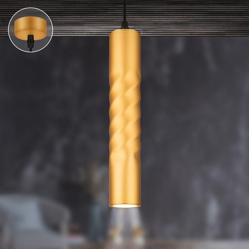 Светильник подвесной PL24 GD выполняет не только осветительную функцию, но и является элементом декора. Создает неповторимый дизайн и уют в помещении. Подходит как для спален, так и для гостиной, столовой, прихожей комнаты. Цоколь для источника света GU10, напряжение питания 230В ~50/60Гц, материал металл, цвет золото, размер D55*300мм, длинна шнура 1500, максимальная мощность лампы 12 Вт, степень защиты IP20